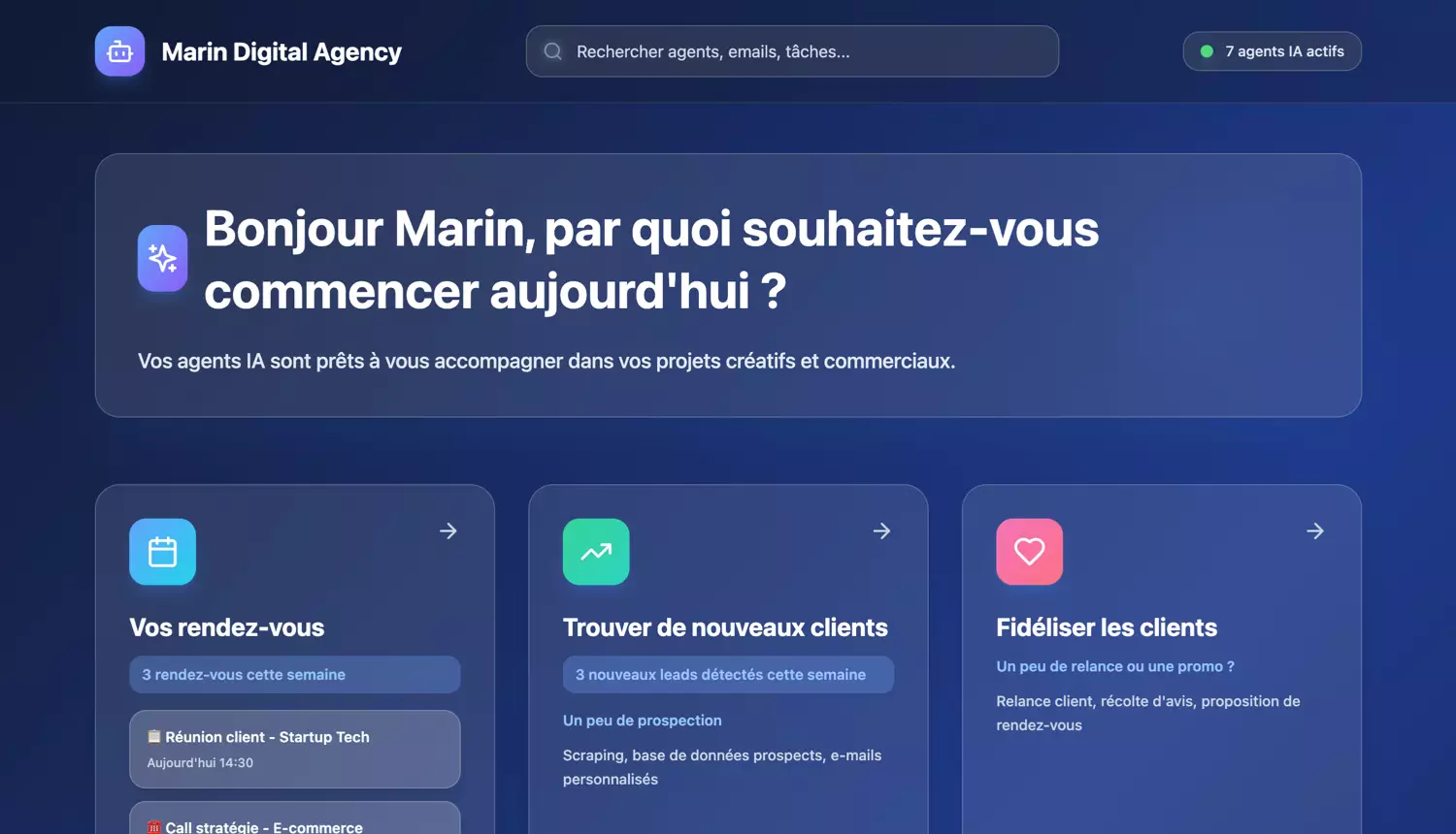 Oui ! Pour tout ce qui concerne le design graphique, l’UX/UI, le branding et la création visuelle, nous vous invitons à découvrir notre studio dédié : Marin Design Studio. Là-bas, notre équipe créative transforme vos idées en expériences visuelles uniques et impactantes.